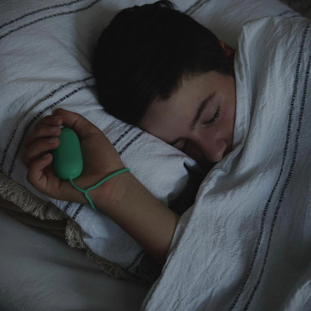 CalmyPod™ uses gentle micro-pulses to stimulate the PC8 acupressure point in your palm, naturally calming the nervous system, easing anxiety, and supporting restful sleep.